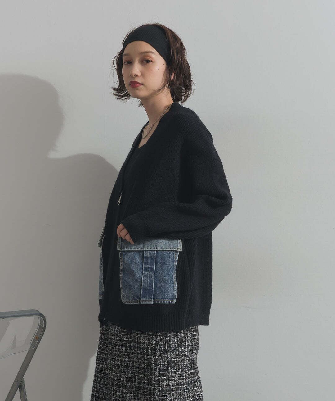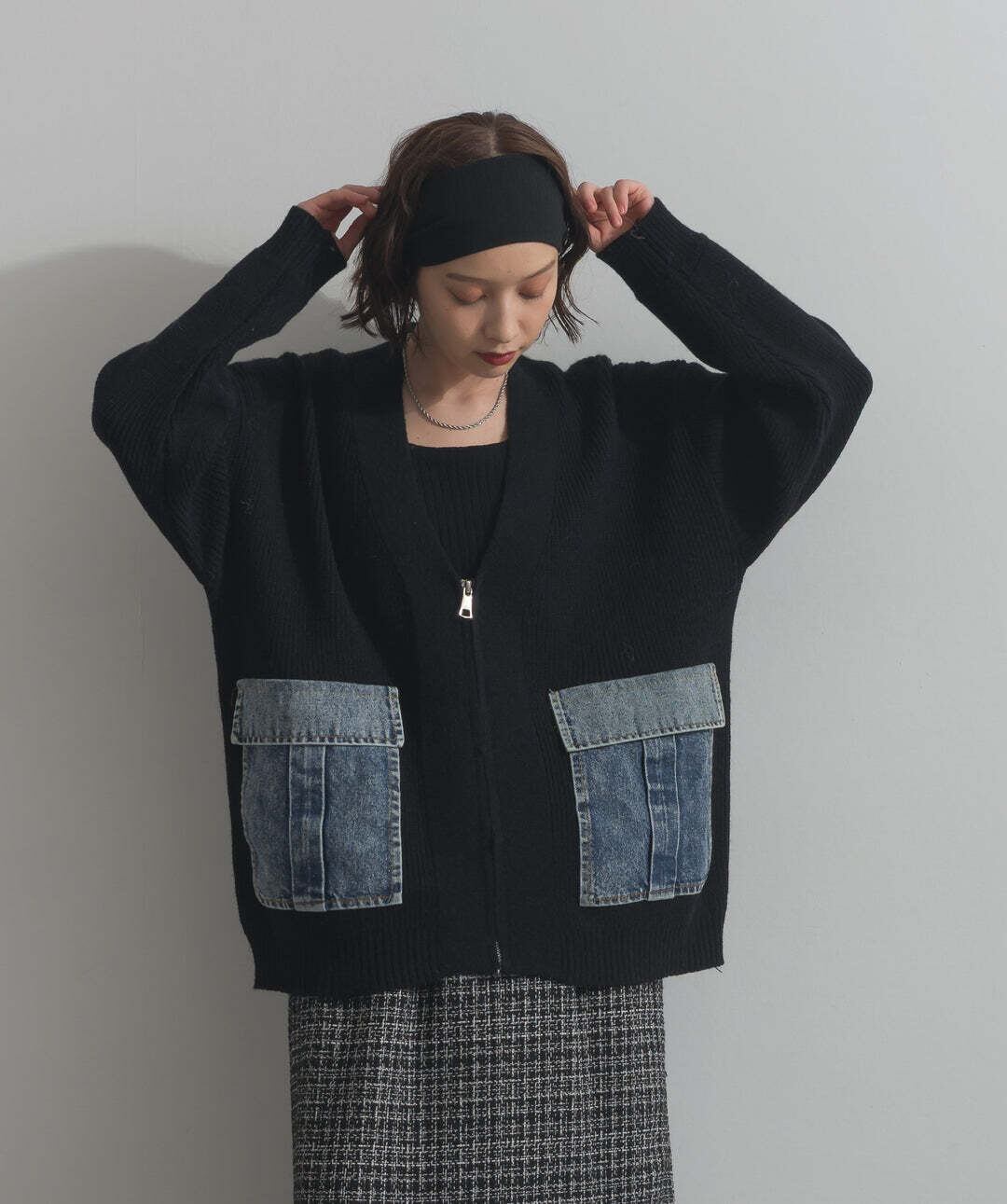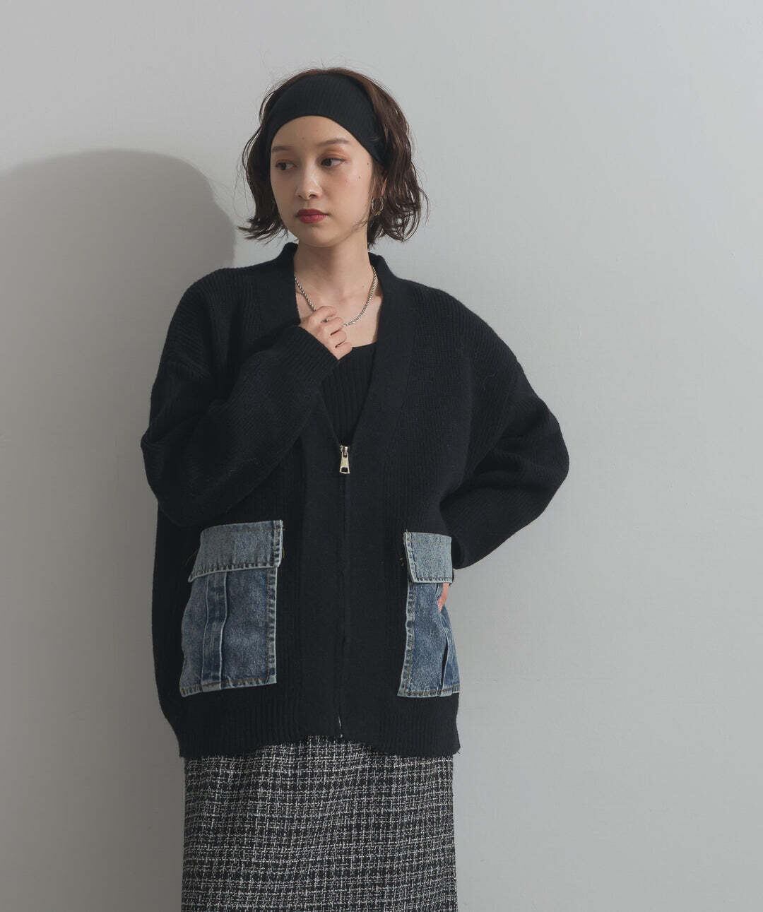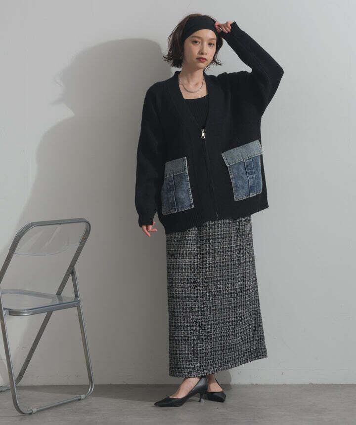 HD2510023 デニムポケットジップニットカーディガン black