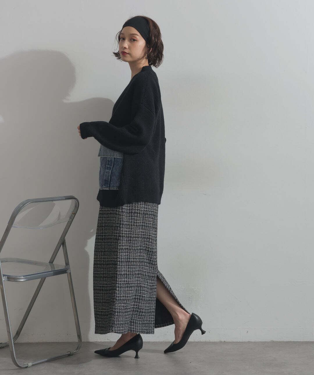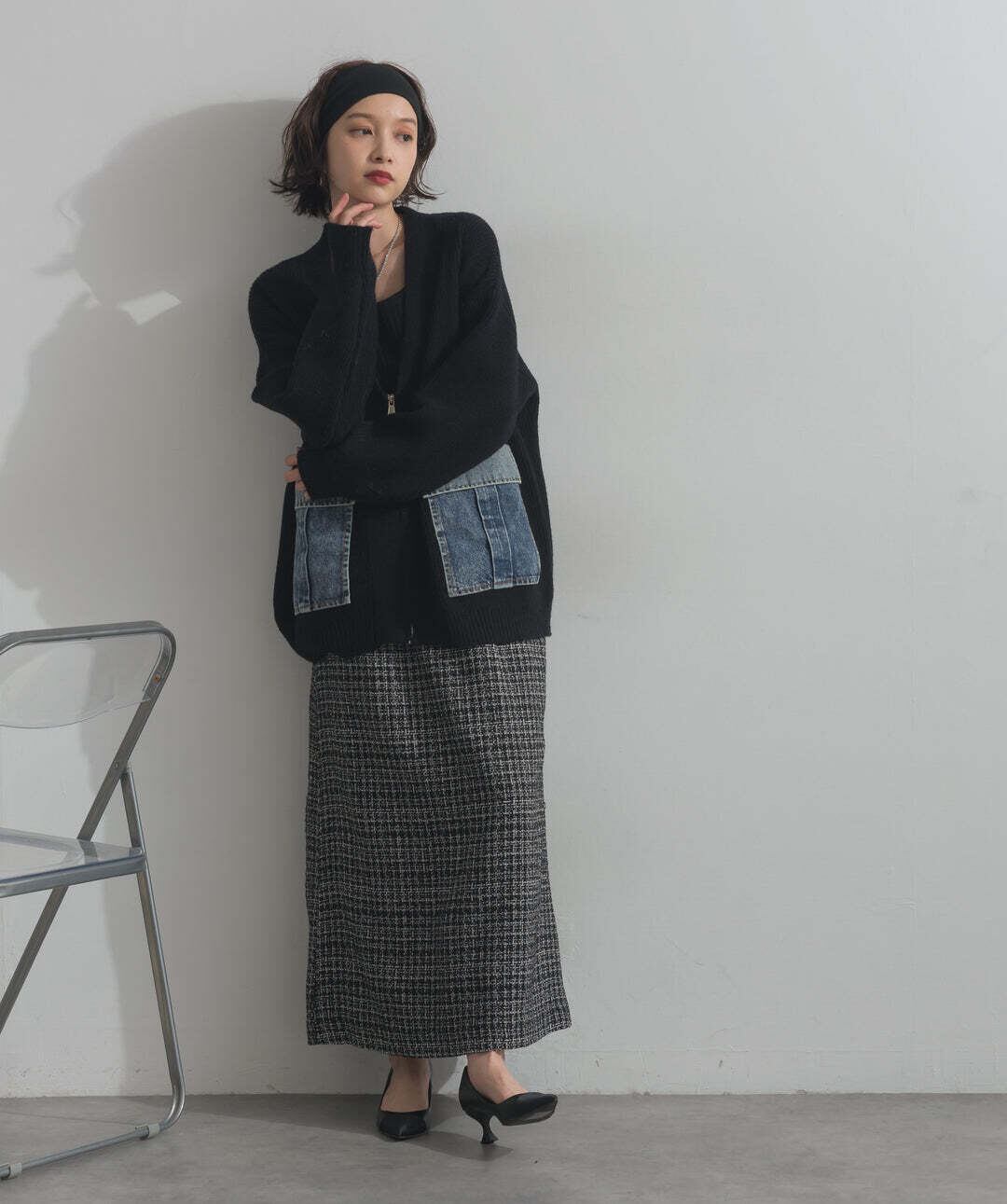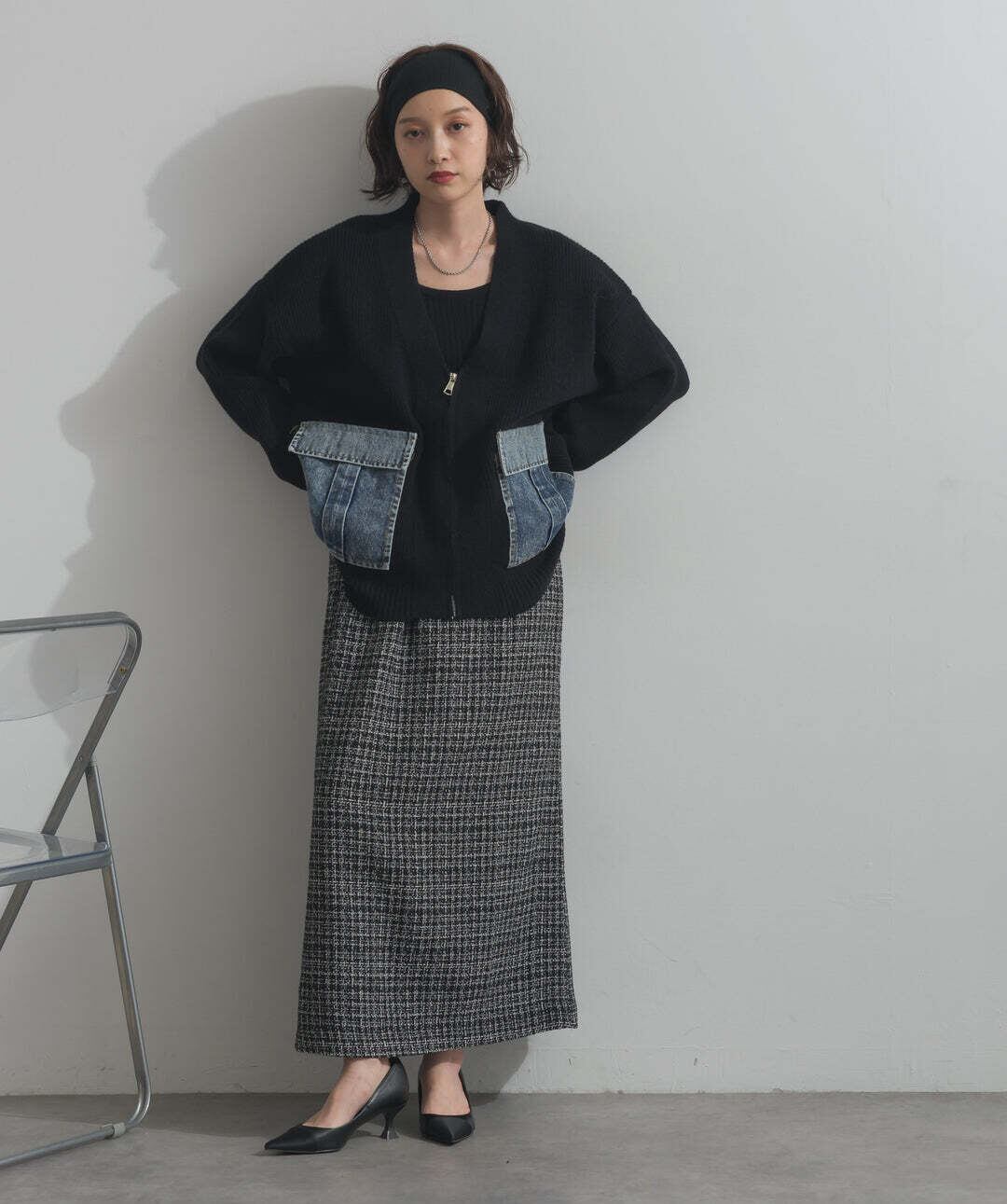 HD2510023 デニムポケットジップニットカーディガン black