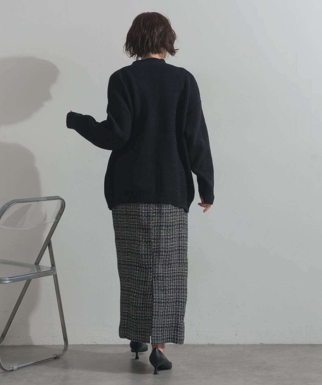 しっかりと厚みがありつつも、柔らかな肌触りが心地よいミドルゲージニットを使用。程よいフィット感でリラックスした着心地を叶え、秋冬のレイヤードにも最適です。