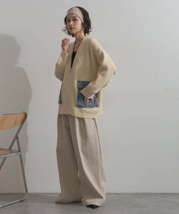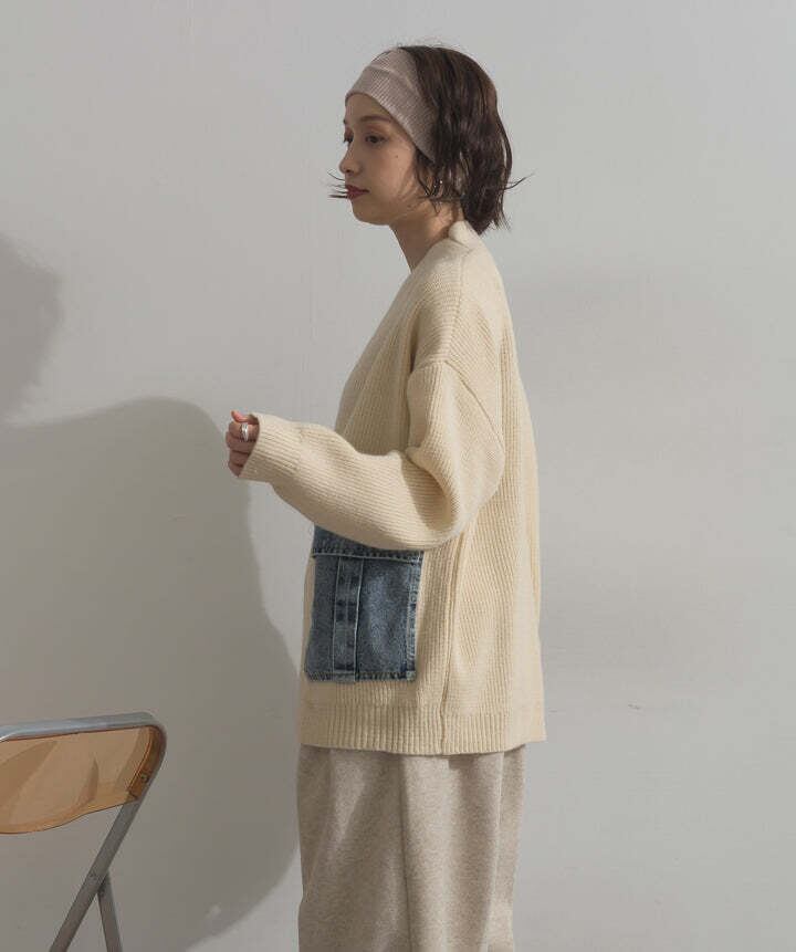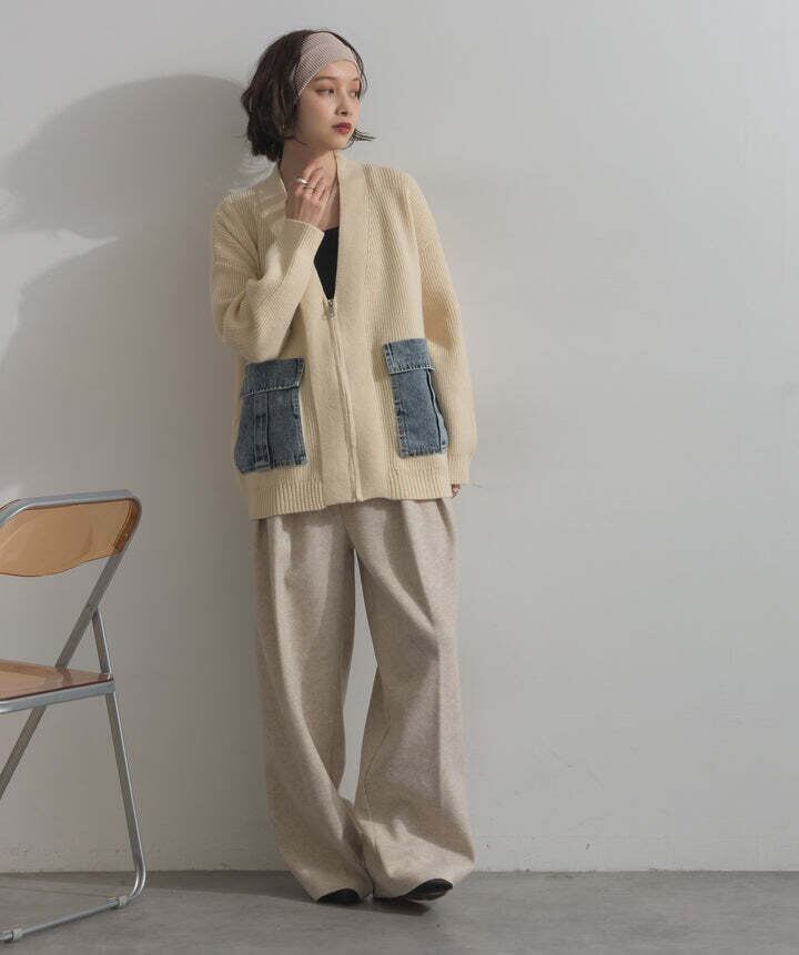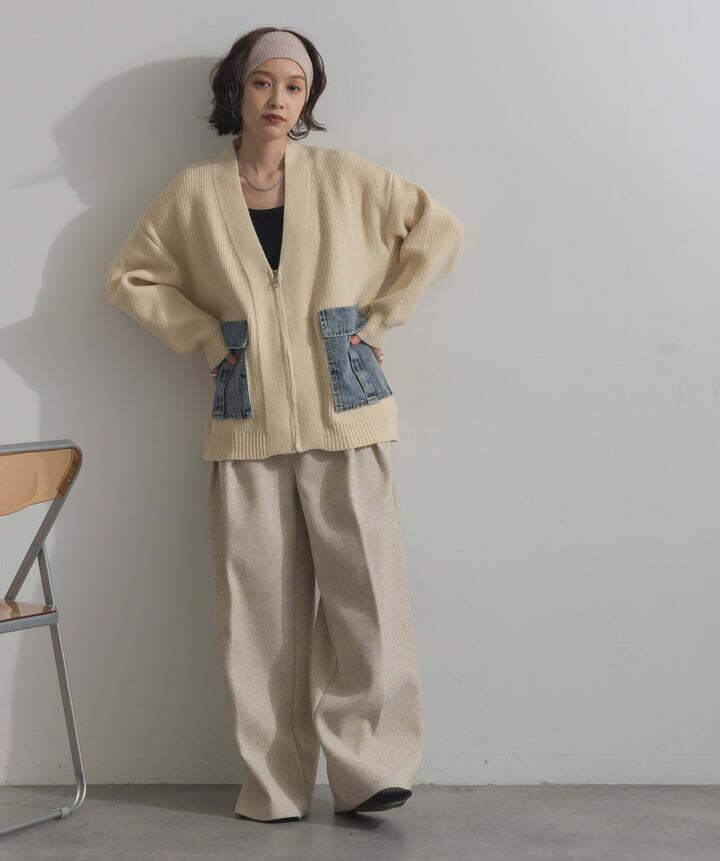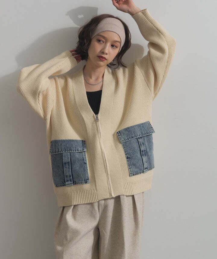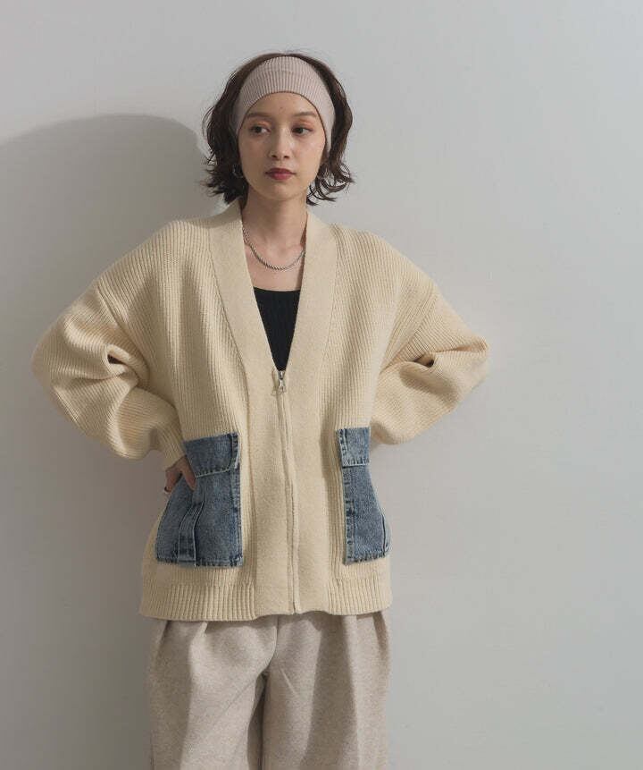 HD2510023 デニムポケットジップニットカーディガン ivory
