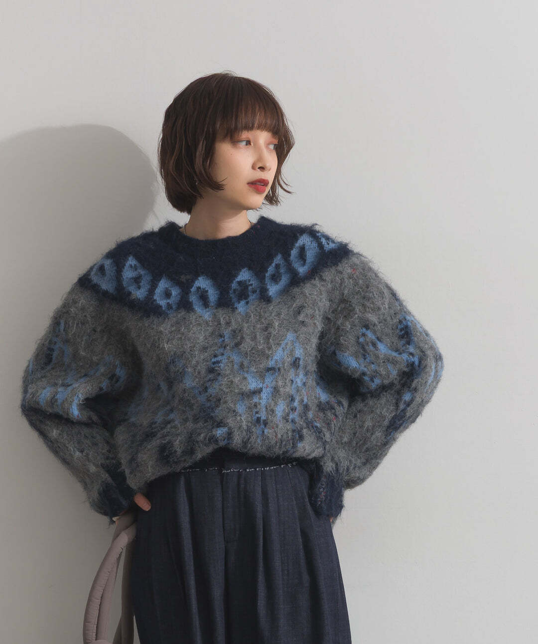 HD2510042 ノルディック柄シャギーニットプルオーバー charcoal
