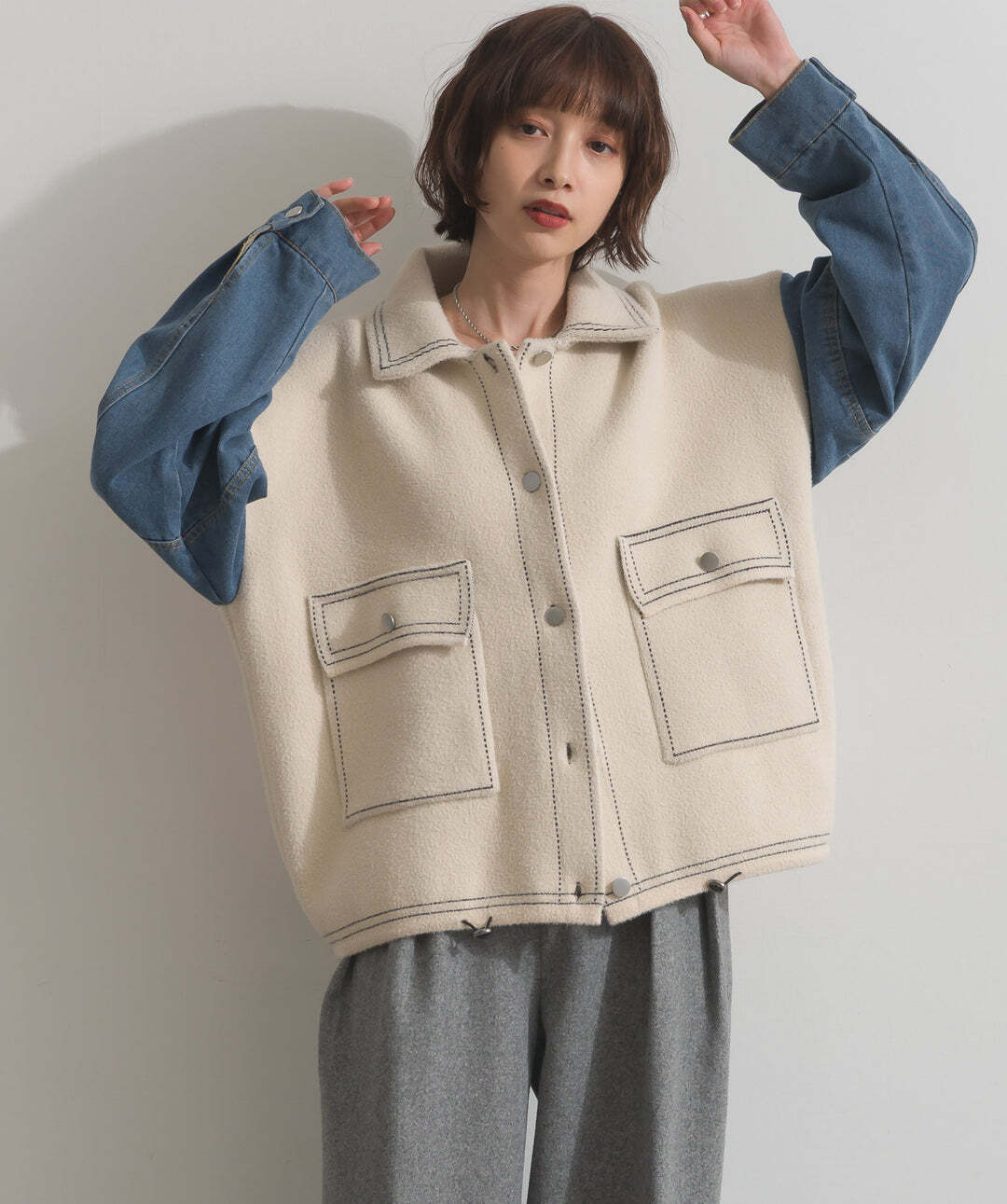HD2510025 配色ステッチニットジャケットカーディガン ivory