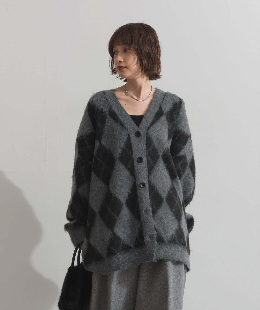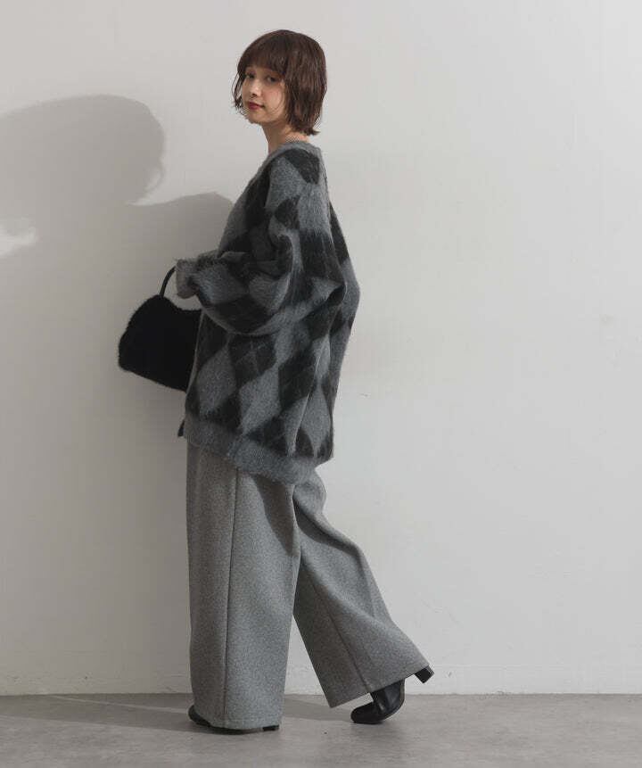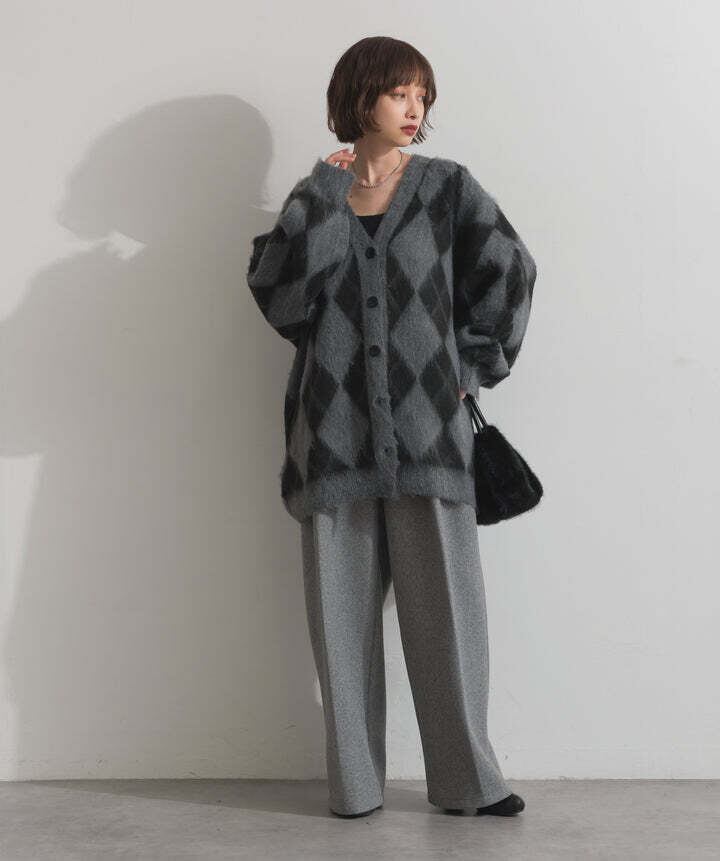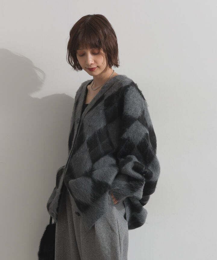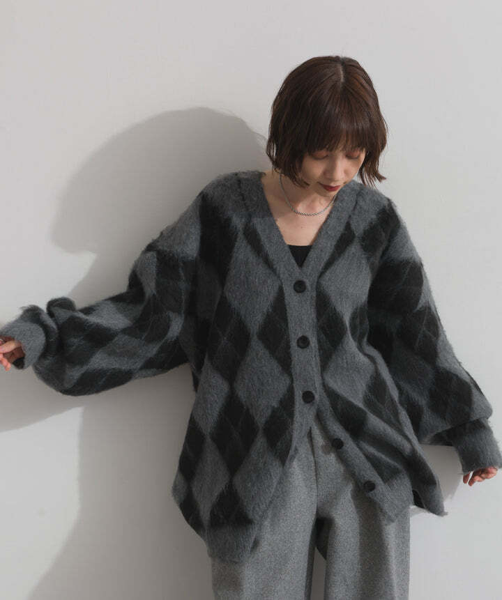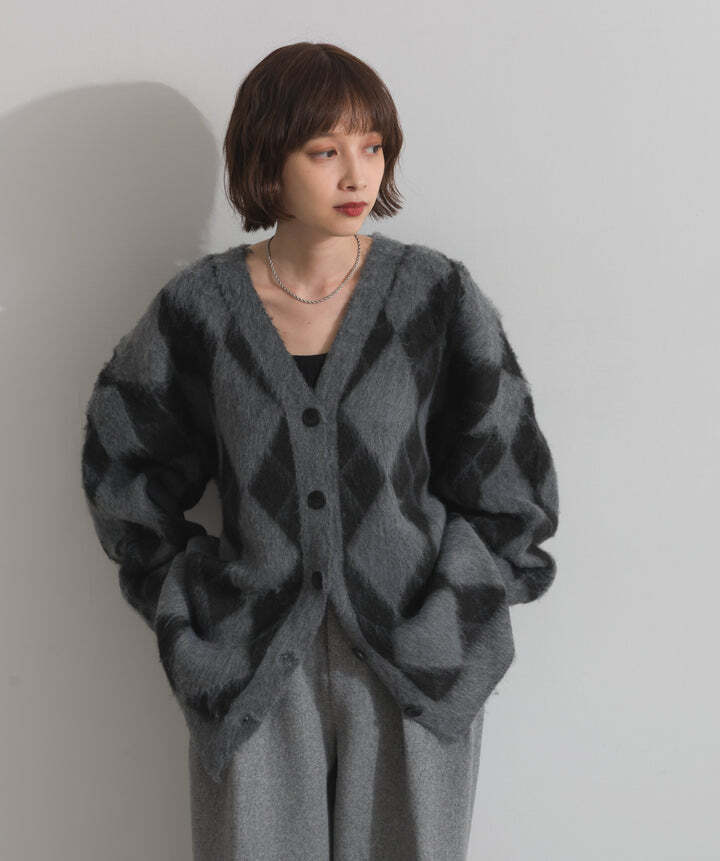 HD2510045 シャギーアーガイルVネックカーディガン gray