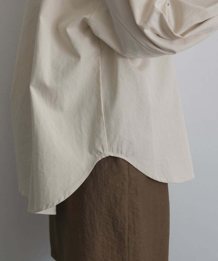 程よいハリと落ち感を兼ね備えた布帛素材を使用。軽やかな着心地ながらも、きちんと感のある表情が魅力。ロングシーズン着回せる厚みで、季節の変わり目にも活躍します。さらっとした肌触りでストレスフリーな着用感。