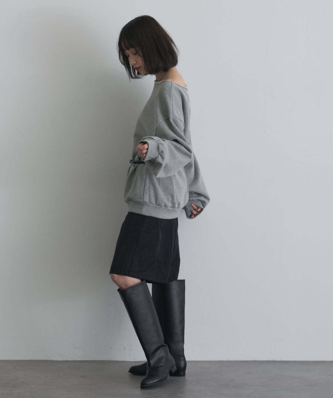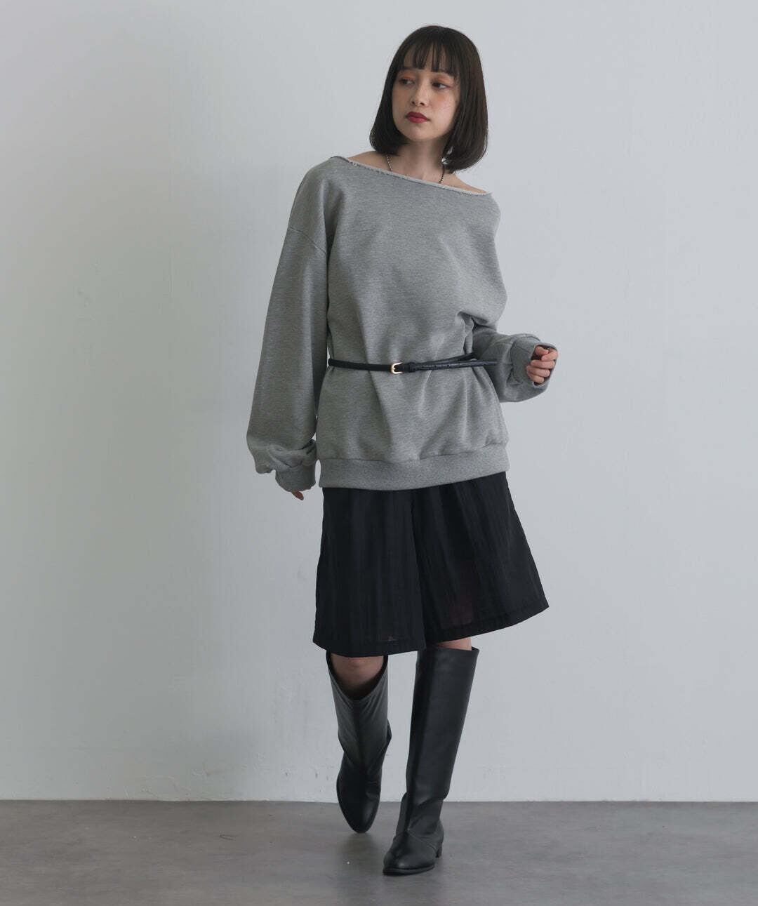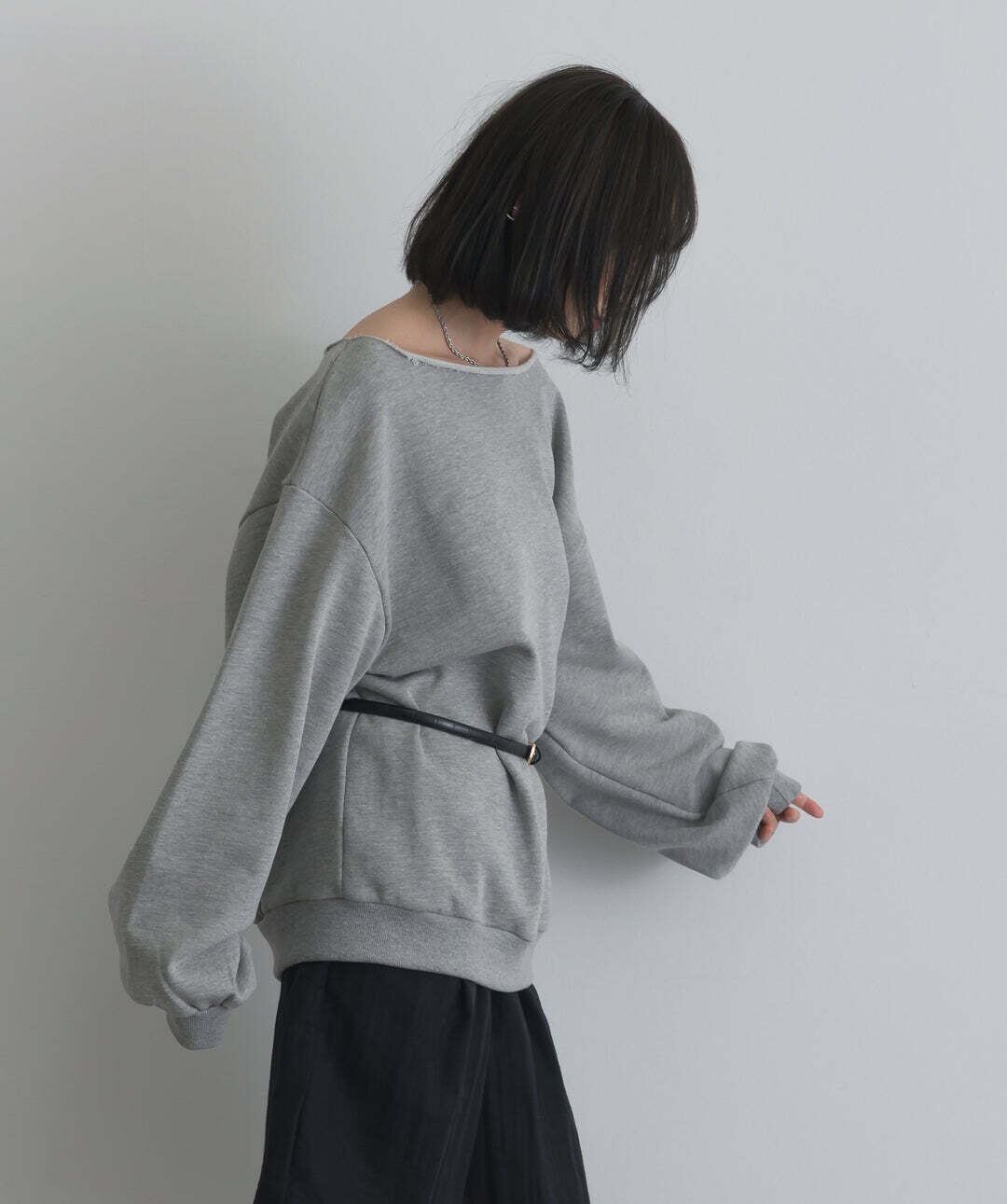 抜け感で魅せる、ワンショルダースウェット。