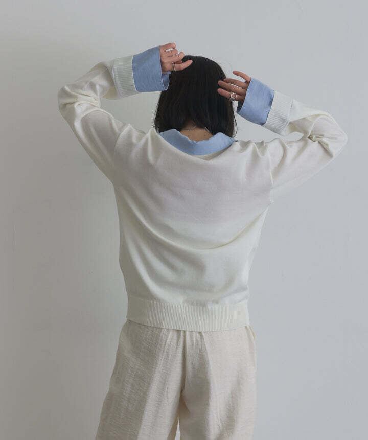 AE5002 シャツ切替レイヤードプルオーバー off white