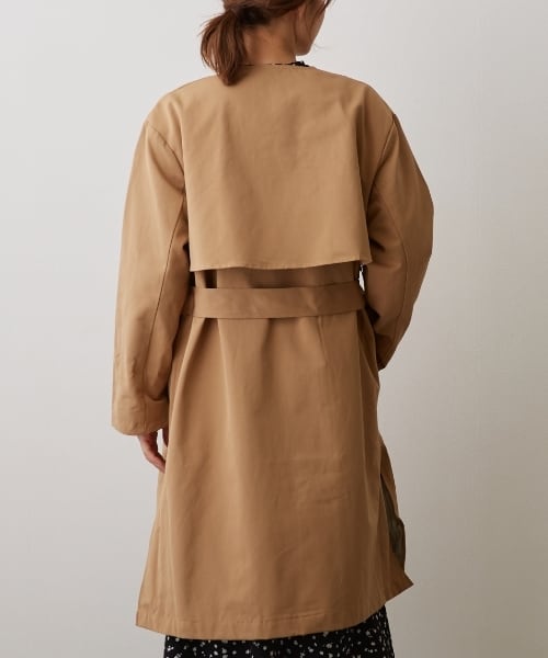 グログランノーカラーコートです。重く見えない様に両サイドにスリットを入れ抜け感をプラス。 背ヨーク、襟元にボタンが1つ。ウエストベルト付きです。