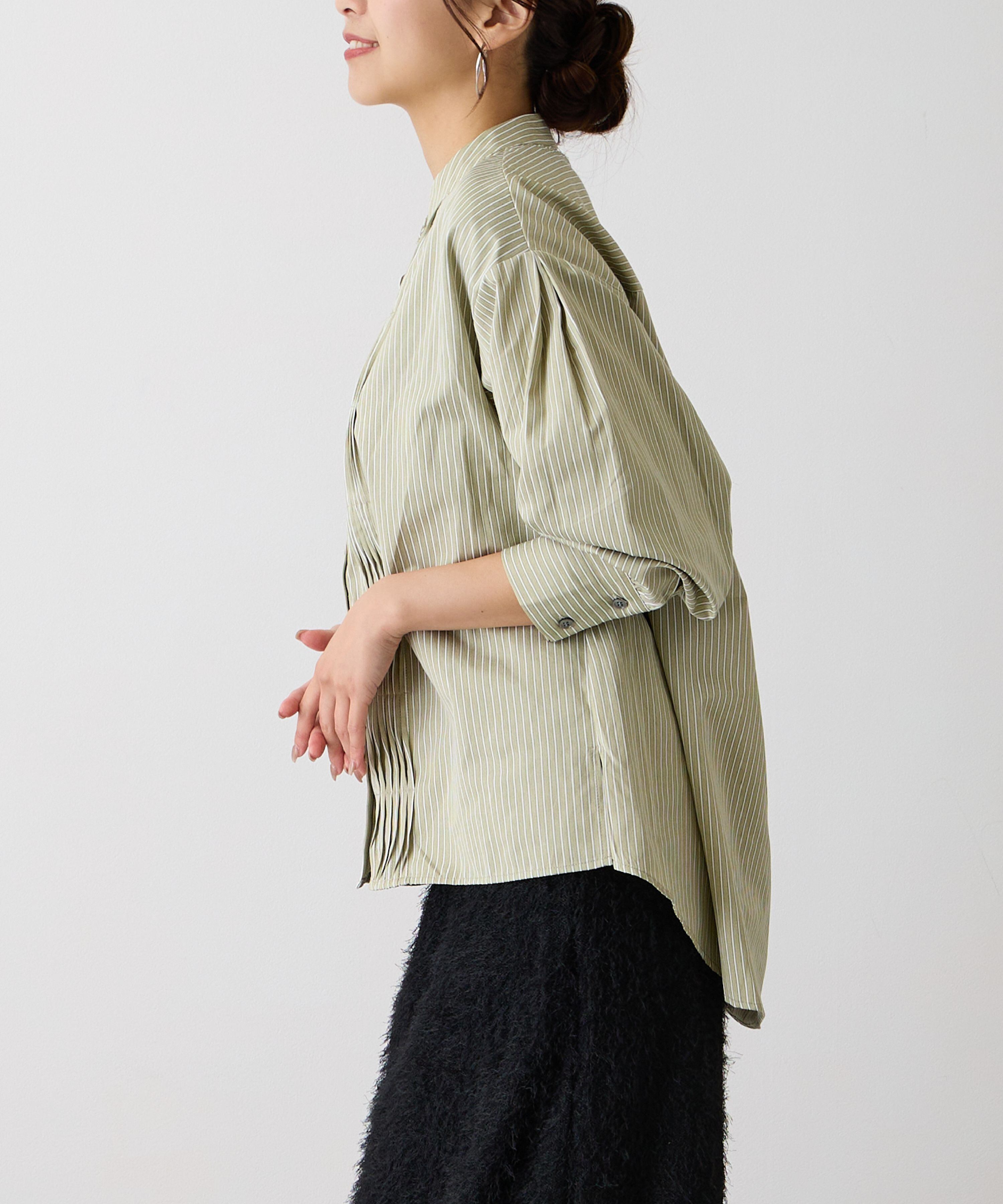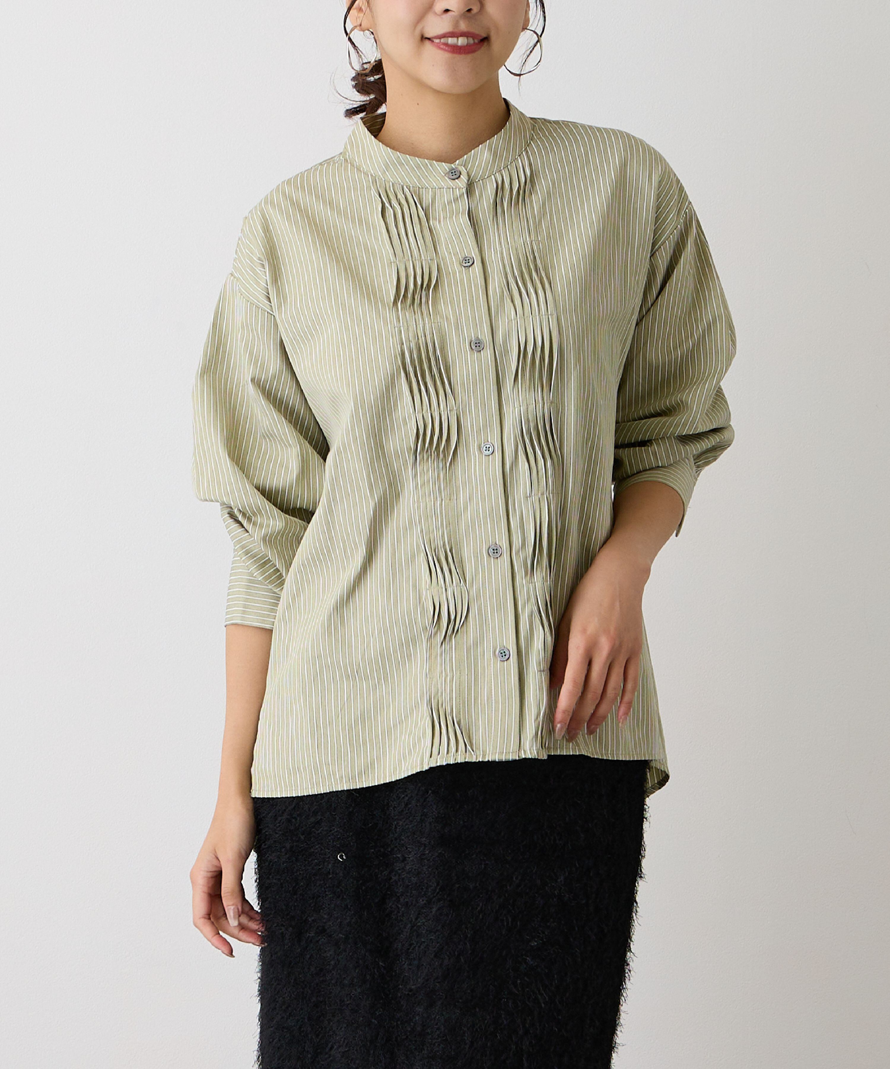 No.58506 ストライプピンタックシャツ Khaki