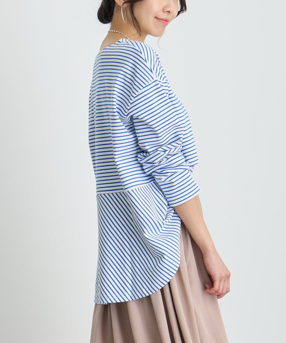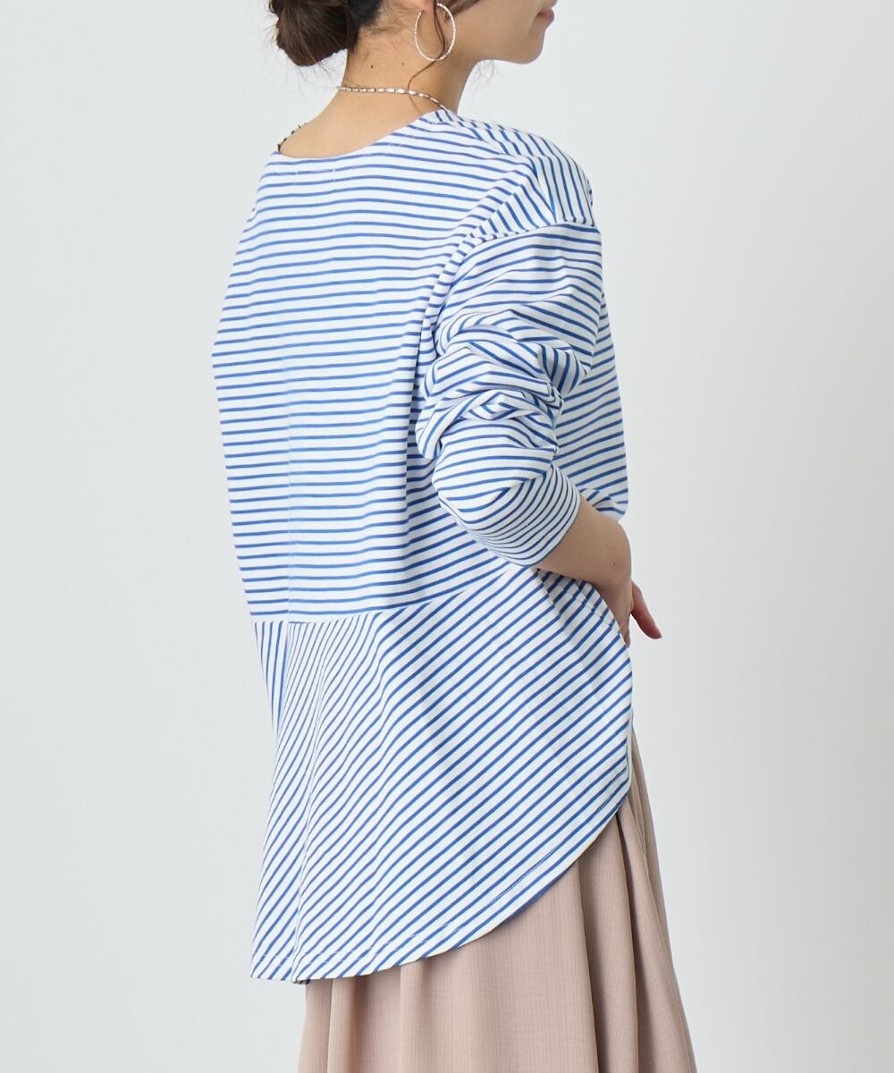 No.24004 バックフレアーボーダーロングTシャツ Blue
