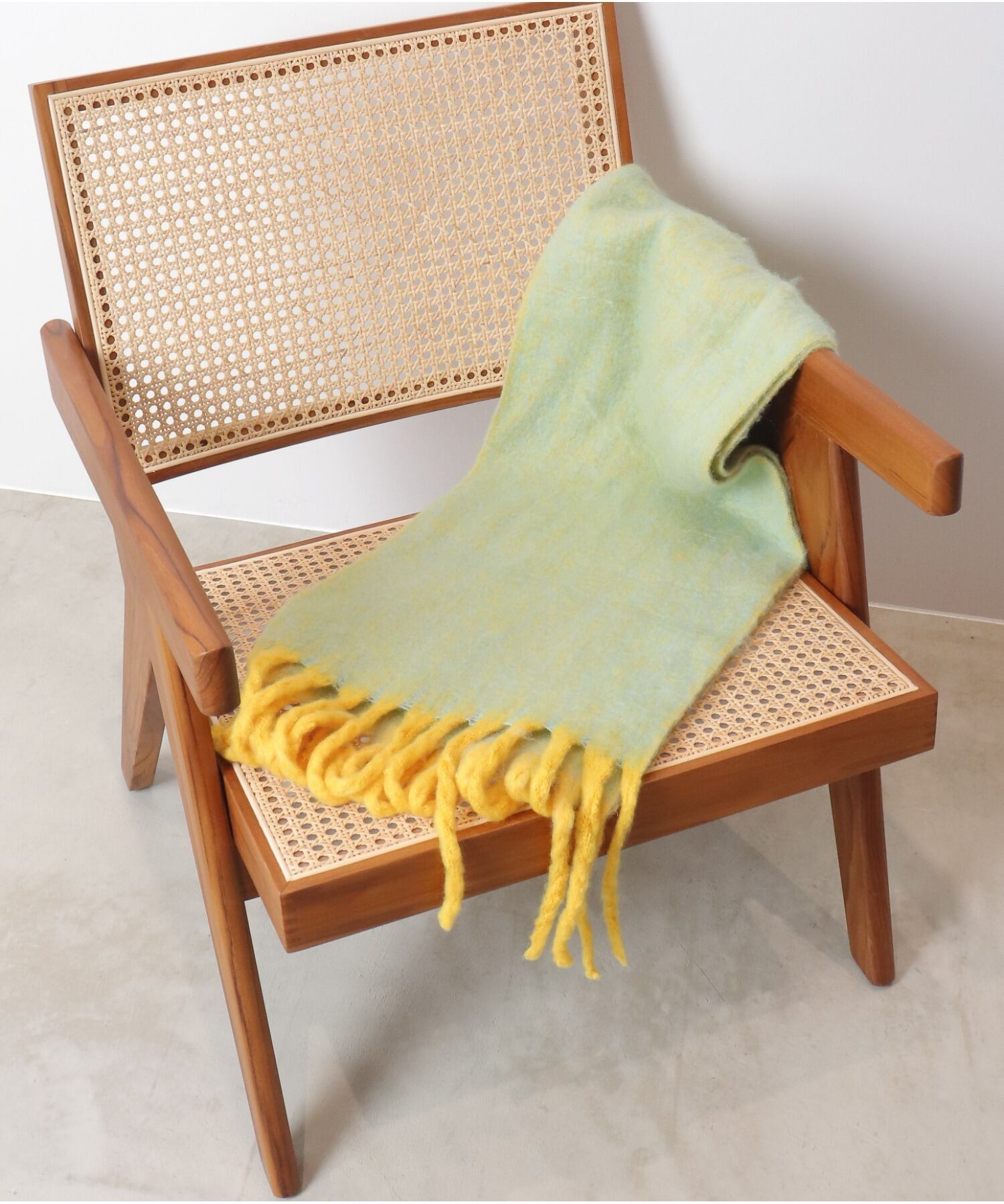 フラッフィーな素材を使用した柔らかな肌触りが心地よいボリュームマフラーは冬の必須アイテムです。ボリュームのあるフリンジデザインとバイカラーでインパクトがあり、スタイリングのアクセントに最適です。シンプルな着こなしに肩掛けしたり巻いたり、様々なアレンジを楽しめるボリューム感が魅力です。ふわふわとした程よい弾力のある生地感は一枚で満足感ある温かさ、ポリエステル特融の吸湿性から素早く乾く特性を持ち、乾きにくい季節にもうれしいポイント!生地の特性上、ピリングが起きやすい生地になっておりますので、着用やお手入れにはご注意いただき、ローテーションを組みながらご使用ください。ぜひお気に入りの一枚から普段は選ばない一枚まで!